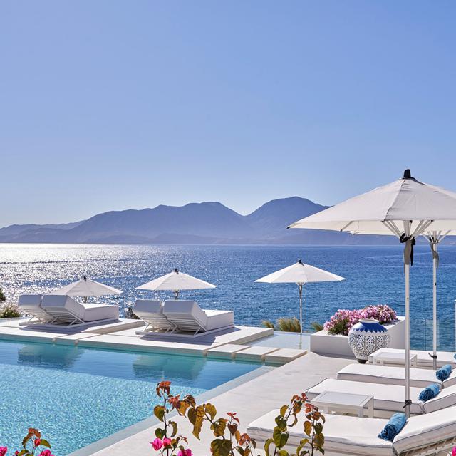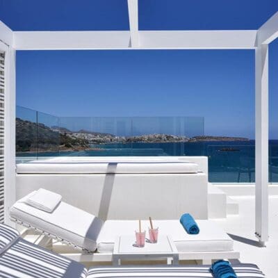 Dit boutique hotel heeft een prachtige ligging aan de Egeïsche Zee. Kijk je om je heen, dan zie je het adembenemende uitzicht over het helderblauwe water, maar ook het goed uitgedachte interieur en exterieur. De kussens op de ligbedden, de muren en de stoelen aan de bar zijn spierwit en steken fantastisch af met het blauw van de lucht en de zee. Tegelijkertijd creëert het een ontspannen en heerlijk mediterraan gevoel. Houd je van lekker eten? Ook dan zit je hier goed. Traditionele gerechten worden in een modern jasje gestoken en klaargemaakt met alles wat de omgeving te bieden heeft. Zin om er een keer op uit te gaan? Bezoek dan het vlakbij gelegen, romantische plaatsje Agios Nikoloas of bekijk de windmolens op de Lassithi-hoogvlakte. Het is hier genieten met een hoofdletter G!