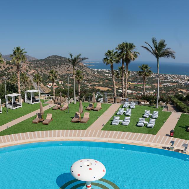 Deze vijfsterrenverblijfplaats ligt op een rustige heuvel net buiten het bruisende Malia. De 2- of 3-kamervilla's zijn stijlvol ingericht met warme tinten, natuurlijke materialen en een privézwembad met uitzicht op zee. De serene setting maakt het ideaal voor stellen of gezinnen die op zoek zijn naar rust en comfort. Gasten kunnen kiezen uit verblijven op basis van logies, logies/ontbijt of halfpension. Het restaurant en de snackbar serveren gerechten met een moderne twist op de Griekse keuken. Er is een spa met hamam, sauna en zwembad, én voor kinderen een eigen speelruimte en zwembad. De ligging is bovendien perfect: op loopafstand van zandstranden, het oude centrum én verrassende bezienswaardigheden zoals de opgravingen van Knossos en het Dinopark.