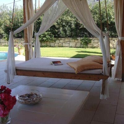 De villa heeft een geweldige tuin met prachtige elementen van natuursteen en mooie gekleurde bloemen. Geniet van een heerlijk ontbijt onder de pergola, ontspan met een goed boek op een van de comfortabele ligbedden of neem een verfrissende duik in het zwembad. Je komt hier helemaal tot rust. Ook als de avond valt, hoef je hier niet weg. Steek de barbecue aan en bewonder de zonsondergang. Als dat geen vakantie is… Wil je er toch een keer op uit? Ook dan zit je hier goed, want met Chersonissos, Piskopiano en Koutouloufari binnen handbereik is Villa Valentine de perfecte uitvalsbasis voor uitstapjes. Stap in je huurauto en rijd binnen enkele minuten naar één van deze dorpjes, of geniet van een heerlijke dag aan het strand. Als de vakantie nog niet onvergetelijk was, zal eigenaresse Poppi er alles aan doen om dat alsnog voor elkaar te krijgen.