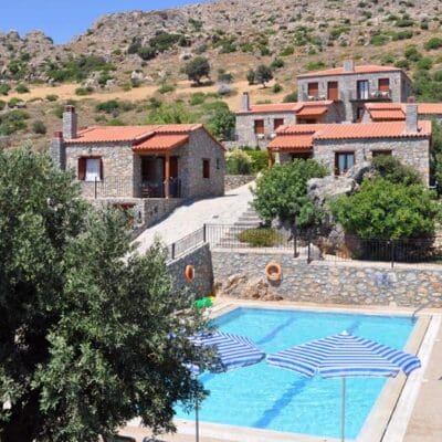 Als ik op Kreta ben, staat een ontmoeting met Manos, mijn lieve Griekse gids, standaard op mijn 'to do'-lijstje. Zijn nieuwste ontdekking is Vrachos Villas in de provincie Agios Vasilios Lampis. Dit paradijsje ligt boven op één van de heuvels die het plaatsje Agia Paraskevi omringen. Op mijn eerste ochtend begin ik de dag met een lange, stevige wandeling in de omgeving. De vogels beginnen langzaam te ontwaken en ik neem uitgebreid de tijd om naar hun vrolijke getjilp te luisteren. Ik zie de eerste zonnestralen doorbreken, geniet van het uitzicht en snuif de geur van de natuur op. Een paar uur later kom ik terug bij mijn villa, wat ik trouwens ook een plaatje vind. Het huisje is opgebouwd met uitgehakte stenen, vandaar ook de naam Vrachos, wat steen of rots betekent, zo weet ik van Manos. Moe maar voldaan plof ik neer op mijn zonovergoten terras. Voor vanmiddag plan ik maar niet al teveel dingen meer.