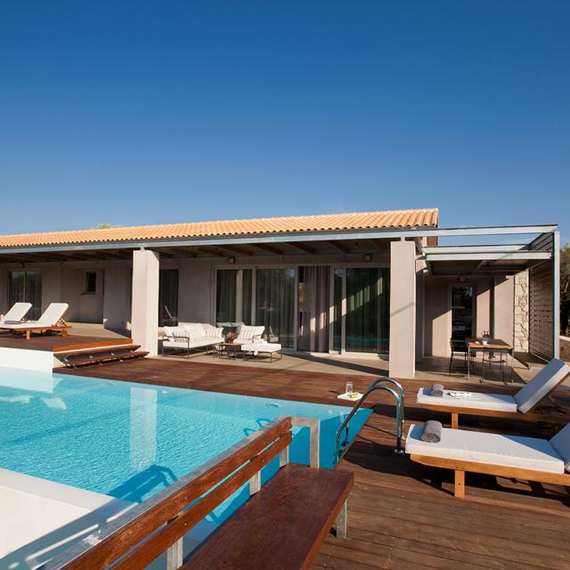 Je vindt de Agrikies Villas in Agios Ioannis, aan de westkust van het Griekse eiland Lefkas. De stenen villa's zijn met een mix van antieke en moderne meubels van binnen net zo mooi als van buiten. Neem een duik in het prachtige privézwembad of steek gezellig de barbecue aan. Je voelt je hier direct thuis! Wil je er een keer op uit? Breng dan een bezoek aan het populaire Milos Beach dat bekendstaat als 'kitesurf walhalla' en schuif 's avonds gezellig aan bij een taverna voor moussaka en een glaasje ouzo. Eet smakelijk!