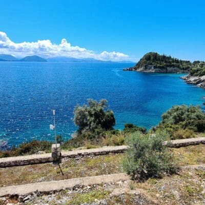 George en Stathis begeleiden me vol enthousiasme naar mijn villa. We nemen de achterdeur en als we over het natuurstenen terras lopen, komt een waanzinnig uitzicht ons tegemoet. Ik zie niets anders dan zee voor me. Het is bijna niet te verwoorden hoe ik van dit moment geniet. Ik kan niet wachten om een duik te nemen in het zwembad, vanaf het water heb ik mijn eigen infinity pool. Als ik achteruit kijk, steekt het helderblauwe water prachtig af tegen de stijl van traditionele stenen villa's. De omheining om de tuin zorgt dat je in alle privacy van je rust kunt genieten. Een vakantie bij dit bijzondere adresje op Lefkas klinkt als muziek in mijn oren.