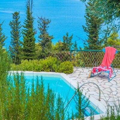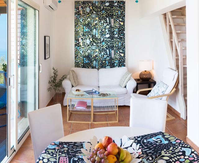 Niet veel later rijd ik met Rena de hoogte in. De kust en de gezellige terrassen zijn al snel heel wat meters lager en de rust lijkt hier in de heuvels van Lefkas te overheersen. Om me heen zie ik niets dan groen, totdat er ineens een paar villa's opdoemen. “Dit zijn ze, Nature Villas!” De trots in Lena's stem is hoorbaar.