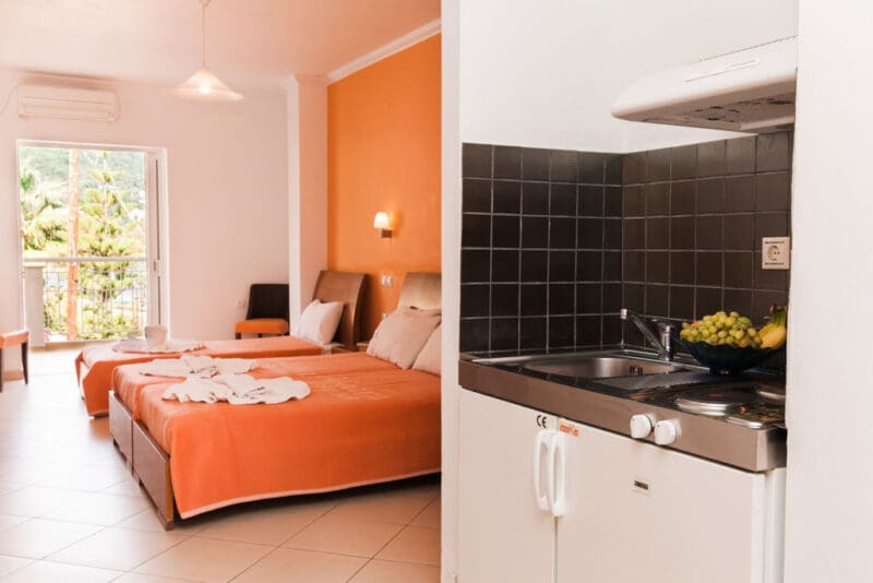 Afendra Luxury Studios ligt aan de rand van de gezellige badplaats Nidri en op loopafstand van het strand. Vanuit het kleinschalige appartementencomplex heb je een prachtig uitzicht op de bergen en de zee. De eenvoudige maar nette appartementen beschikken over een kitchenette, maar heb je geen zin om te koken dan vind je op korte loopafstand diverse restaurantjes. Boek Afendra Luxury Studios en geniet van een heerlijke zonvakantie in Nidri! TIP: boek deze vakantie als Fly & Go * Gemak voorop: pakketreis met vlucht + deze accommodatie + huurauto * De verzekering voor je auto is geregeld * Vrijheid en avontuur: ontdek in je eigen tempo je vakantiebestemming Bekijk deze Fly & Go vakantie ()