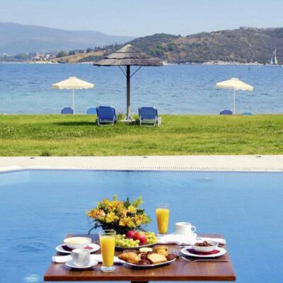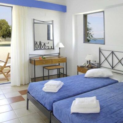 Stel je voor je opent je balkondeur en het eerste wat je ziet is de fonkelende zee. Slechts op een steenworp afstand. Je wordt wakker in een prachtig hotel, gelegen in een pittoresk dorpje in een betoverende regio. Deze accommodatie biedt niet alleen directe toegang tot een idyllisch kiezelstrand, maar ook een fantastisch zwembad. Op loopafstand ligt de knusse haven, met vissersboten en gezellige tavernes. Hier proef je de authentieke Griekse keuken en geniet je van de warme gastvrijheid. Deze regio beroemd om haar adembenemende stranden en groene heuvels nodigt je uit voor avontuurlijke wandelingen en fietstochten. Ontdek de rijke cultuur en geschiedenis van het land. Maak een korte rit van 15 minuten naar de hoofdstad van de regio. Hier dwaal je door historische straten, shop je bij gezellige boetiekjes en geniet je van een diner in een levendig restaurant. Ontdek de charme van deze bruisende stad en maak je vakantie compleet.