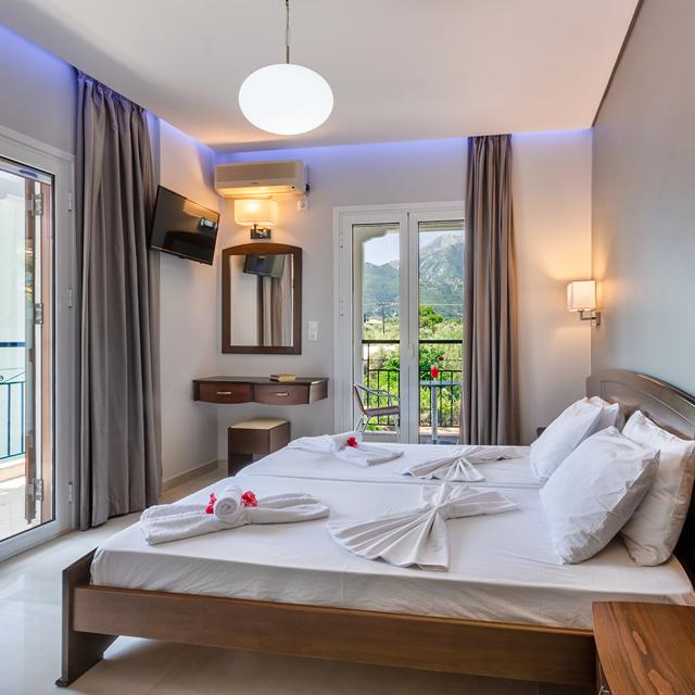 De Griekse gastvrijheid ervaar je iedere dag; Laertis Kartanos zorgt persoonlijk voor een onbezorgde zonvakantie op Lefkas. De frisse kamers zijn licht ingericht en hebben uitzichten over de bergen, de zee of de tuin van Sands Studio’s. En in die tuin kun je overigens ook een heerlijke duik nemen, want het zwembad, met gezellige poolbar, is iedere dag een populaire plek.