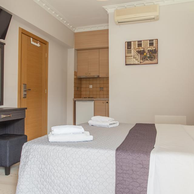 Ondanks de goede ligging is het er heerlijk rustig bij Georgio Palace. De studio’s zijn omgeven door een groene tuin waar je heerlijk kunt ontspannen bij het zwembad. Kies een comfortabel ligbedje uit waar je perfect kunt genieten van de zon. Wil je er een keertje op uit? In de omgeving valt er genoeg te ontdekken. Bezoek de indrukwekkende Dimosari-watervallen op slechts 3,5 km afstand, of verken de idyllische stranden, schilderachtige bergen en mooie bossen van het eiland.