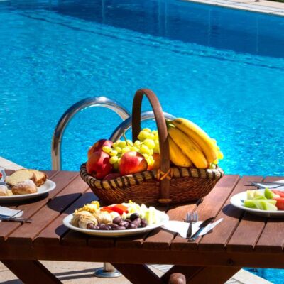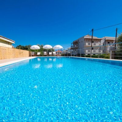 Ligt in het gezellige Nikiana, Het strand op loopafstand, Ontspanning en avontuur in één, Duik in het verfrissende zwembad, Alles op loopafstand van jou, Fijne appartementen met keuken & inclusief transfers.