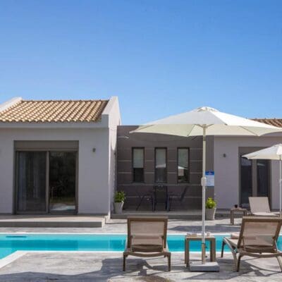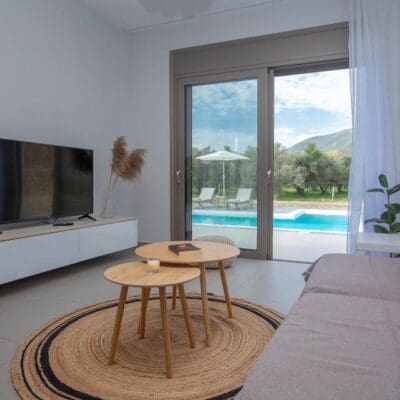 Je vindt Throisma Country Private Residences in het vissersdorpje Vasiliki, in het zuiden van het Griekse eiland Lefkas. Het huis is gloednieuw en dat is goed te zien aan de moderne inrichting met lichte kleuren, strakke lijnen en hippe accessoires. Ga lekker achterover zitten op de patio en geniet van het uitzicht op de wonderschone natuur. Je komt hier helemaal tot rust! Benieuwd naar de omgeving? Rijd dan naar het schitterende strand van Agiofili. Dit strand is zoals je dat in je dromen voor je ziet, met kleine witte kiezels, een turquoise zee en steile rood-witte rotswanden. Wat tijdens je vakantie ook niet mag ontbreken, is een bezoek aan de levendige haven van Vasiliki. Schuif aan bij één van de gezellige visrestaurants en breng een bezoek aan de winkeltjes. Hier vind je vast en zeker een mooi souvenir voor de thuisblijvers!