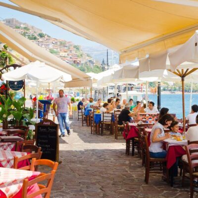 Genieten onder de palmbomen, In hart van Molyvos, Met sfeervol terras, Voor een lekker drankje, Eenvoudig en gezellig, Volop tavernes in de buurt & inclusief transfers.