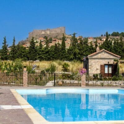 De sfeer die hier heerst is uniek; wat een heerlijk plekje! Rondom Appartementen Villa’s Elpiniki staan veel olijfbomen, wijnvelden en fruitbomen. En het zwembad is hier niet alleen heerlijk om bij af te koelen, het heeft ook nog eens een uitzicht op dé eyecatcher van de stad; de beroemde burcht van Molivos. Maar niet alleen de omgeving is hier prachtig, want ook de villa’s zelf zijn royaal en ruim ingericht. De traditionele appartementen hebben karakteristieke details, waar de authentieke bouwstenen een goed voorbeeld van zijn. Ook beschikken de appartementen over ruime terrassen of patio’s waar je ’s morgens lekker lang en relaxed kunt genieten van een ontbijtje.