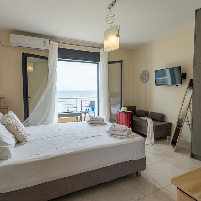 Blue Waves Resort ligt in Plomari, verscholen aan de rand van Skala Eressos en is de perfecte uitvalsbasis voor wie wil ontsnappen aan de drukte. De studio's, apartementen en villa's zijn ruim en licht, met houten accenten en warme tinten die het natuurlijke karakter van de omgeving weerspiegelen. Een frisse duik in het zwembad, een boek lezen onder een olijfboom of de dag beginnen met een ontbijt in de tuin – het kan hier allemaal. En met de zee op loopafstand is een verfrissende strandwandeling altijd binnen handbereik.