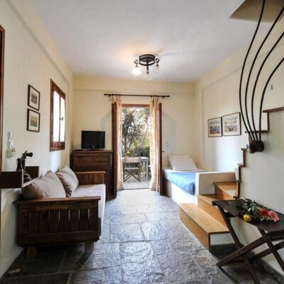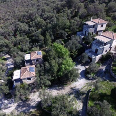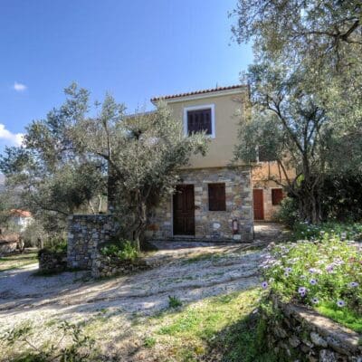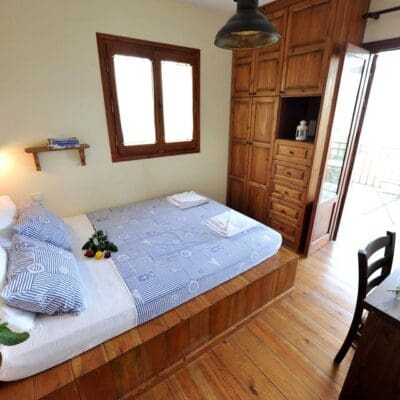 'i-aaaa!' klinkt het vanachter de boom vandaan. Twee grote ogen kijken me vriendelijk aan. 'Dat is onze ezel', lacht de eigenaar als hij mijn verbaasde gezicht ziet. Net daarachter zie ik een mooi licht en traditioneel huis, en hij zegt opgewekt: 'Hier is je appartement! Dan krijg ik een uitgebreide rondleiding op Gera's Olive Grove. Het is een prachtige plek in een bosrijke omgeving. Je komt veel katten, honden en zelfs een paard tegen. En op tientallen meters afstand vind je een heel klein kiezelstrandje waar je een ligstoeltje kunt neerzetten. Je kijkt dan uit over de baai van Lesbos. Ik neem een duik in het kalme water van de baai en kijk verwonderd om mij heen. Wat een fijne, rustige plek!