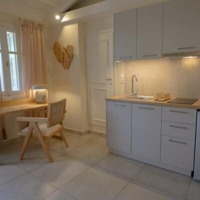 Ik weet nog hoe ik de grindweg afreed, langs olijfbomen en geurige tuinen, toen ineens dit mooie adresje opdoemde. Mijn nieuwsgierigheid werd meteen beloond: achter het poortje vond ik een verstilde oase, waar geschiedenis en luxe moeiteloos samenkomen. “Wist je dat dit vroeger paardenstallen waren?” zegt Dimitri met een grijns, terwijl hij me welkom heet met een glas limonade uit eigen tuin. Nu huist hier iets totaal anders: lichte kamers met houten plafonds, een kalme sfeer, en… een privéjacuzzi die zachtjes borrelt in de zon. Mijn koffers blijven nog even staan. Eerst genieten.