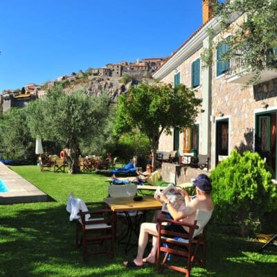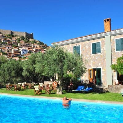 Amfitriti Hotel biedt voor ieder wat wils! Het hotel is rustig gelegen, toch ook centraal, met een heerlijk zwembad in de tuin met een prachtig uitzicht op de burcht. Nog meer ontspannen kan aan het strand dat op steenworp afstand ligt. Je kunt hier heerlijk relaxen en toch ook de drukte makkelijk opzoeken. Kortom, Amfitriti Hotel is een prima uitvalsbasis!