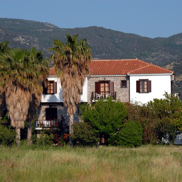 De eenvoudig ingerichte kamers kijken uit op de goed onderhouden rozentuin. De vriendelijke en behulpzame eigenaren doen er alles aan om je verblijf op Lesbos onvergetelijk te maken!