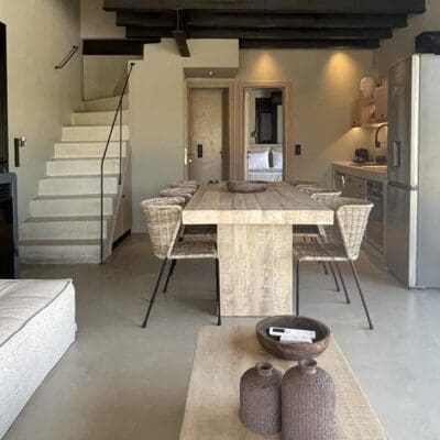 Ik zit op het terras van mijn villa bij Petra's Estate, terwijl de zon langzaam ondergaat en de bergen in prachtige kleuren veranderen. Petra komt naast me zitten en vraagt hoe mijn dag was. “Heerlijk,” zeg ik, “de ochtend begon met een verfrissende duik en daarna een rustige wandeling door de natuur. Het voelt echt als een oase van rust hier.” Petra glimlacht en zegt: “Dat is precies wat ik wilde creëren.” Haar zorg en aandacht voor detail maken dit verblijf extra bijzonder.