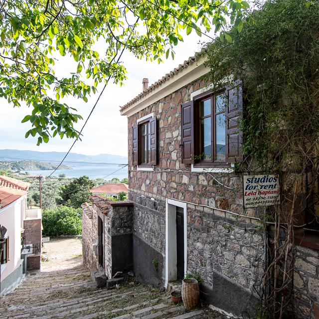 Studio’s Lela’s Kaptani Molivos liggen in het oude dorp van Molivos op Lesbos, net boven de ingang van het centrum. Via een klein pad wandel je omhoog naar deze eenvoudig ingerichte studio’s met uitzicht over zee. Dankzij de ligging zit je midden in het dorpsleven en verblijf je toch rustig, op loopafstand van het kiezelstrand en de gezelligheid van Molivos.
