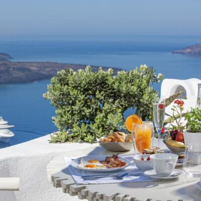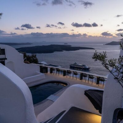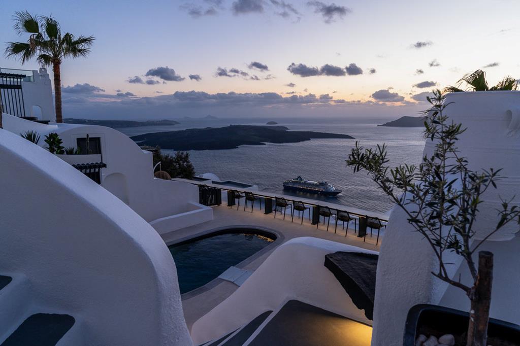 Uitgehouwen in de rotsen vind je dit elegante hotel. Een plek waar je in je arm knijpt. Na de make over in 2024 hebben sommige kamers nu een jacuzzi met caldera uitzicht. De gewelfde plafonds en witte muren ademen pure Santorini. Geniet van het zwembad, Griekse gerechten of een cocktail. Of kies voor een spabehandeling en complete rust. Firostefani ligt op loopafstand, Thira bereik je binnen minuten. Wat een plek …