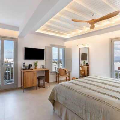 Dit hotel ligt midden in Mykonos stad, op loopafstand van cafés, bars, winkels, Klein Venetië en de windmolens. Het hotel combineert frisse Cycladische lijnen met natuurlijke materialen voor een stijlvolle, zonnige sfeer. Ruime kamers en suites bieden comfort en balkons met schitterend zee en stadszicht. Begin je dag met ontbijt in de zon en geniet van Griekse en mediterrane gerechten in het restaurant van lunch tot laat. Centraal, stijlvol en vol Mykonos vibes!