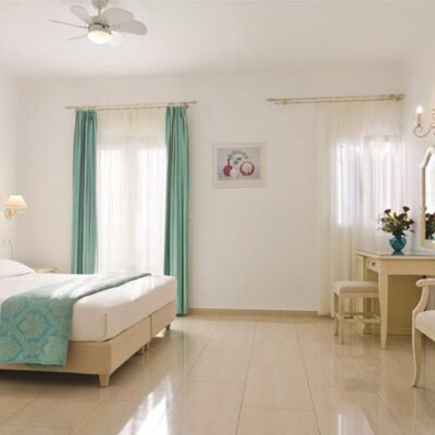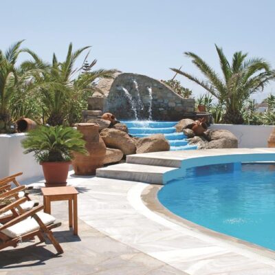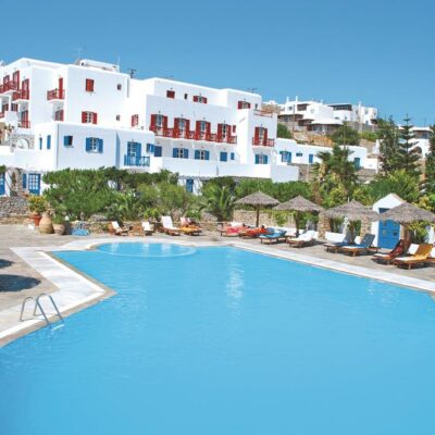 Dit hotel is ideaal voor de strandliefhebber. Dit hotel in Plati Yialos op Mykonos ligt namelijk tussen twee prachtige stranden in; het superluxe Plati Yialos en Psarou strand. Hier strijkt de jetset elke zomer neer en staan de luxe jachten en speedboten in de file om aan te mogen leggen. Een fascinerend spektakel! Gelukkig zijn er ook delen van deze stranden die niet zo luxe en duur zijn en waar het gewoon heerlijk en relaxt vertoeven is. Je kunt ook kiezen voor een relaxte dag aan het riante zwembad van dit hotel. Want tussen alle pracht en praal is het hotel een fijn familiehotel met mooie tuin en ruime kamers. Een zorgeloze vakantie vol zon, zee en lekker eten.
