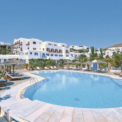 Dit hotel is ideaal voor de strandliefhebber. Dit hotel in Plati Yialos op Mykonos ligt namelijk tussen twee prachtige stranden in; het superluxe Plati Yialos en Psarou strand. Hier strijkt de jetset elke zomer neer en staan de luxe jachten en speedboten in de file om aan te mogen leggen. Een fascinerend spektakel! Gelukkig zijn er ook delen van deze stranden die niet zo luxe en duur zijn en waar het gewoon heerlijk en relaxt vertoeven is. Je kunt ook kiezen voor een relaxte dag aan het riante zwembad van dit hotel. Want tussen alle pracht en praal is het hotel een fijn familiehotel met mooie tuin en ruime kamers. Een zorgeloze vakantie vol zon, zee en lekker eten.