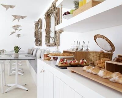 Strak, trendy, relaxed hotel, Met een ontbijt om van te smullen, Verblijf in luxe, lichte kamers, Vlak bij bruisend Mykonos-stad, Dommel weg op de zachte ligbedden, Genieten in alle rust: Adults Only & inclusief transfers.