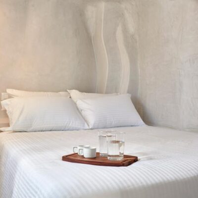 Vind jouw stukje Grieks geluk direct aan het kitesurfstrand van Korfos. Elke kamer hier heeft zeezicht en een eigen karakter. Op 5 minuten rijden van de bruisende Mykonos stad en een korte wandeling naar Ornos Beach heb je het beste van twee werelden. Duik in het infinitypool of verken de stad – jij bepaalt. Voor waaghalzen zijn er kitesurflessen. Voor rustzoekers wacht een ligstoel op het strand. Hier schrijven de golven jouw verhaal.