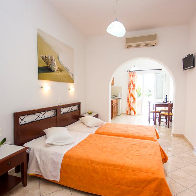 Eleftheria Studios is een gemoedelijk vakantieadresje op het bijzondere Mykonos. Het ligt in de omgeving van allemaal pittoreske gebouwtjes die zo typerend zijn voor dit eiland. En ga je graag naar het strand? Dan zit je hier goed, want na een klein stukje wandelen geniet je al van zon en zee. De studio’s zijn fijn om in thuis te komen na een heerlijke dag luieren. Of nadat je een dagje op pad bent geweest. Vergeet ook vooral niet een paar keer naar Mykonos-stad te gaan. Dit stadje is heel erg leuk om doorheen te slenteren vanwege de blauw-witte straatjes die ook nog eens opgefleurd worden door de kleurrijke souvenir winkels.