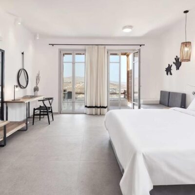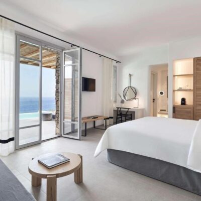 Helder water, een cocktail in je hand en jij? Dat is vakantie op Mykonos. Aan de baai van Kalo Livadi ontdek je dit pareltje met gezellige strandbars en livemuziek om de hoek. Het infinity zwembad biedt een uitzicht dat je sprakeloos maakt. Na een dag Griekse zon wacht je elegante kamer. Of kies voor me time in de spa en fitness. In het restaurant proef je de Middellandse Zee, terwijl bij de zwembadbar verse sapjes en lokale wijnen lonken. Vakantiemodus aan en Live Happy!