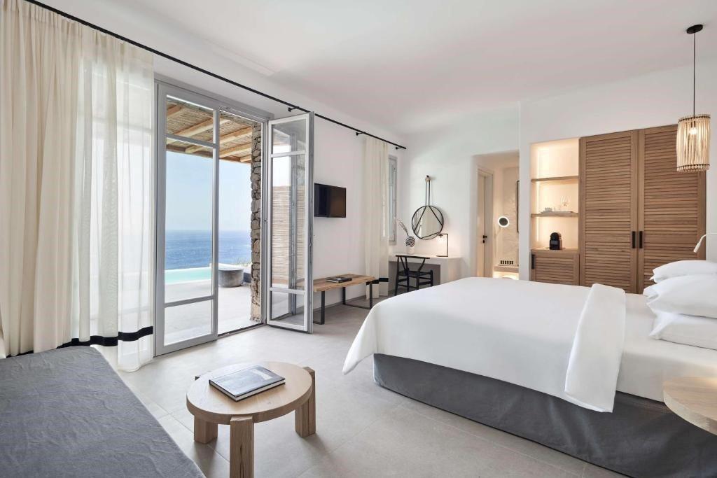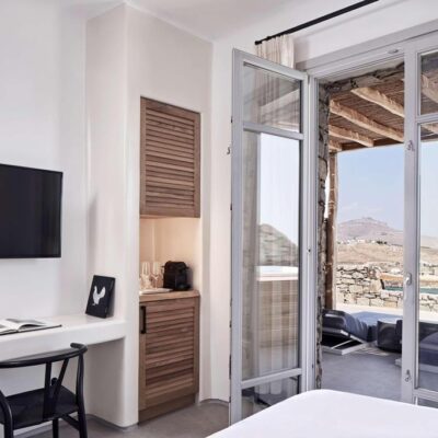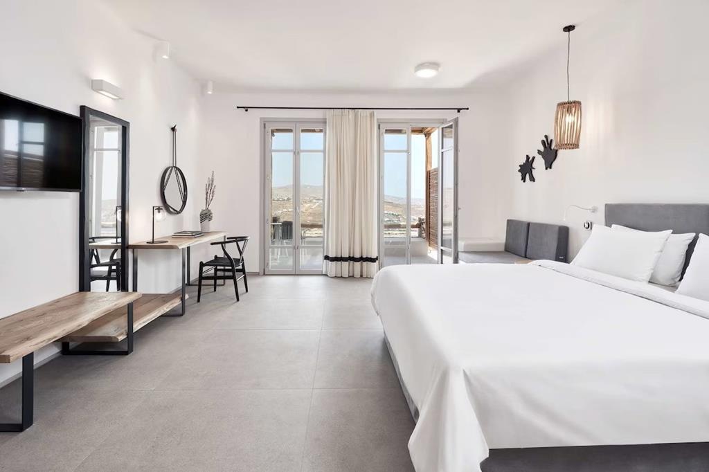 Infinity pool met eilanduitzicht, Verse sapjes aan het zwembad, Kalo Livadi als achtertuin, Baai op loopafstand, Griekse lekkernijen, Kamers met Egeïsche flair & inclusief transfers.
