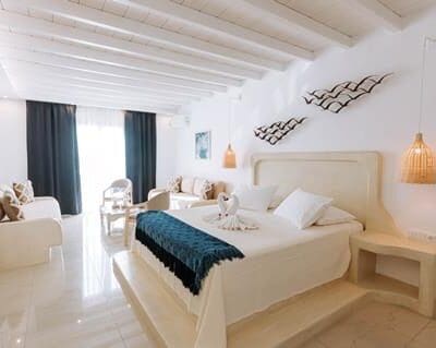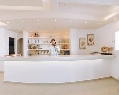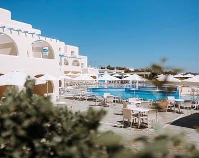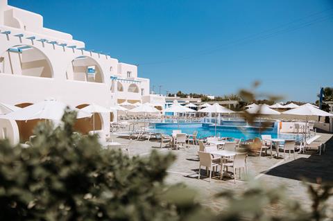 Geheel in Cycladische stijl, Ruime en moderne kamers, Wandel naar het strand, 2 buitenbaden, En een speciaal kinderbad, Smullen in het restaurant & inclusief transfers.
