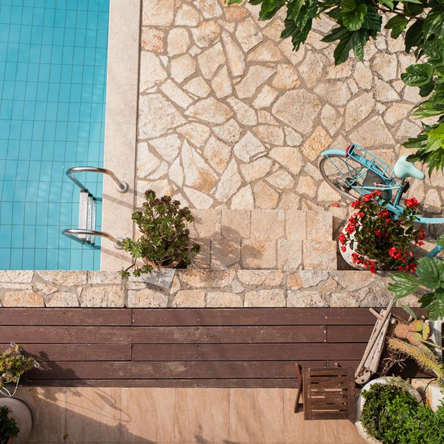 Samen lopen we verder de tuin in. Naast het zwembad staat een prachtige boom. “Het is net een parasol hè?” zegt Christos trots. Ik knik en droom meteen weg. Ik kan niet wachten om onder deze boom iedere ochtend te genieten van een kopje koffie… Op dat moment stapt Eleni, de vrouw van Christos, de villa uit. “Eliza! Je bent precies op tijd!” Verbaasd kijk ik haar aan. “Loop maar met mij mee, dan laat ik je de villa zien.” Terwijl ik de villa binnenstap valt de eettafel mij meteen op. Er staan allemaal lokale lekkernijen en wijn klaar. “Daar gaan we zo samen van genieten Eliza! Eerst laat ik je de rest van de villa zien.”