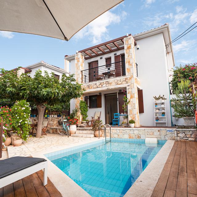 Ik slaak een zucht van geluk. De prachtige tuin, de mooi ingerichte villa en de lieve eigenaren Christos en Eleni. Ik ben in een paradijsje beland!