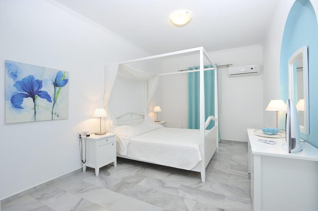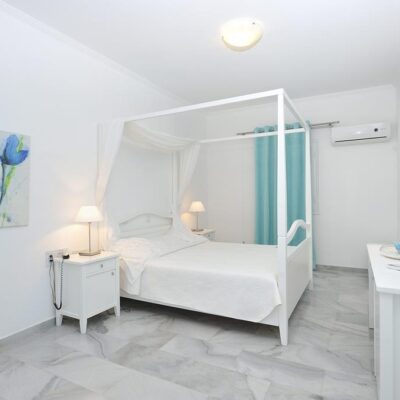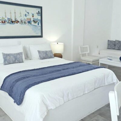 Azuurblauwe poolverfrissing, Spierwitte Cycladische kamerstijl, Lokale smaken op je bord, Vissersdorp op loopafstand, Eilandleven op z'n puurste, Strand vlak bij gelegen & inclusief transfers.
