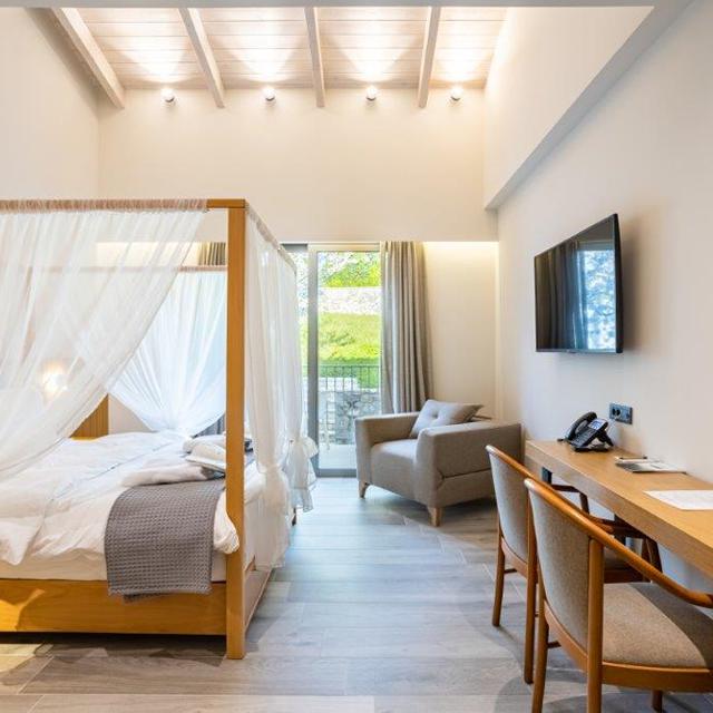 Na een schilderachtige rit door het Taygetos-gebergte arriveer ik bij Denthis Hotel. Dit hotel ligt midden in een indrukwekkend natuurgebied, waar de serene omgeving mij meteen opvalt. De zon werpt een zachte, warme gloed en het terras ziet er uitnodigend uit. De ijsblokjes in mijn drankje tinkelen en ik neem even de tijd om te genieten van het moment voordat ik mijn kamer ga verkennen. Met een brede glimlach en een diepe zucht besef ik dat de vakantie eindelijk is begonnen. Ik sta te popelen om op avontuur te gaan en zoveel mogelijk nieuwe dingen te ontdekken!
