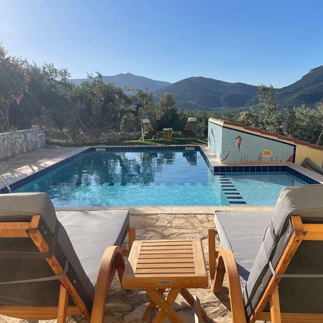 Terwijl ik neerplof op het terras met uitzicht op de baai van Epidavros, voel ik een glimlach opkomen. De zon zakt langzaam achter de bergen, het zwembad glinstert en de geur van citrusbomen waait zachtjes over. Hier, tussen 130 olijfbomen, sinaasappelbomen en een indrukwekkend uitzicht over zee, hebben Nienke en Michel hun droom tot leven gebracht. Ik proef het in alles: de zorg waarmee de studio's zijn ingericht, het flesje wijn dat voor me klaarstaat, de uitnodiging om aan te schuiven bij een dineravond met lokale gerechten. Dit is geen vakantieverblijf – dit voelt als een hartelijk welkom.
