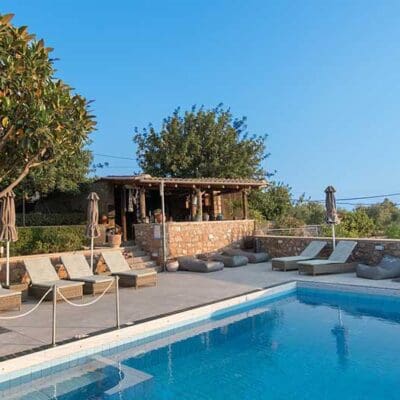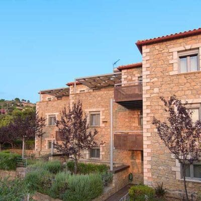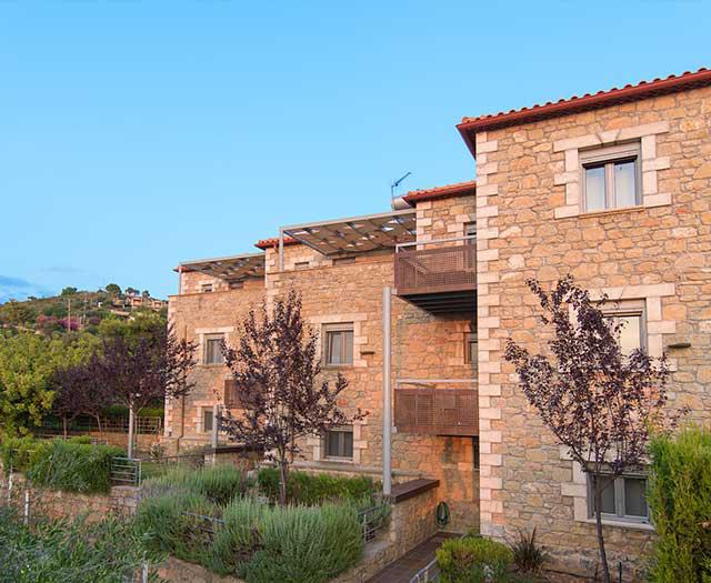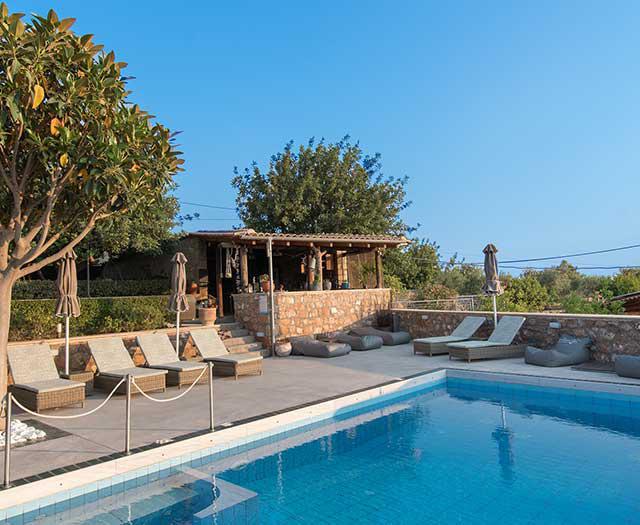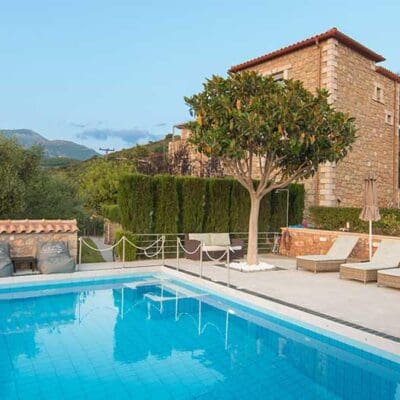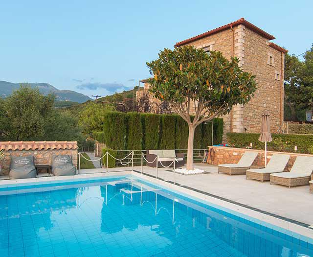 Onderweg naar mijn adresje begin ik ineens kriebels in mijn buik te voelen. Het is altijd spannend om een voor het eerst een bezoekje te brengen aan een adresje waar ik veel over gehoord heb. Maar als ik het hek van Villavia binnenloop, weet ik direct dat het de moeite waard is. Het uitzicht vanaf hier op de Golf van Messinia is adembenemend! De drie villa's op het terrein zijn uit traditionele steensoort opgetrokken, waardoor ze perfect in hun omgeving passen.
