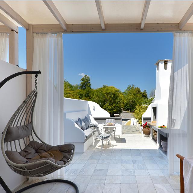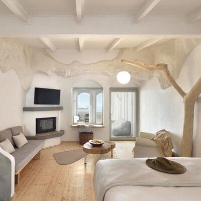 Olympa Suites biedt stijlvolle en moderne suites, ontworpen met oog voor de natuurlijke omgeving en geïnspireerd door biophilic design. De "cave-style" architectuur van de kamers roept het gevoel op van een serene schuilplaats, terwijl natuurlijke boomdetails in het interieur een vleugje "treehouse-style" toevoegen. De Griekse architectuur – met haar witte tinten, eenvoud en harmonieuze mix van traditionele en moderne elementen – maakt de ervaring compleet. Dankzij de ligging direct aan het strand kunnen gasten op elk moment van de dag genieten van de zee, terwijl de nabijgelegen bergen een extra dimensie van rust en inspiratie toevoegen. 's Ochtends is het heerlijk om te ontbijten op het terras, terwijl de zon opkomt boven het water. Overdag kun je de historische site van Olympia verkennen, op slechts een klein stukje rijden. En na een dag vol ontdekkingen is er niets fijner dan ontspannen in de jacuzzi en genieten van de zachte avondbries.