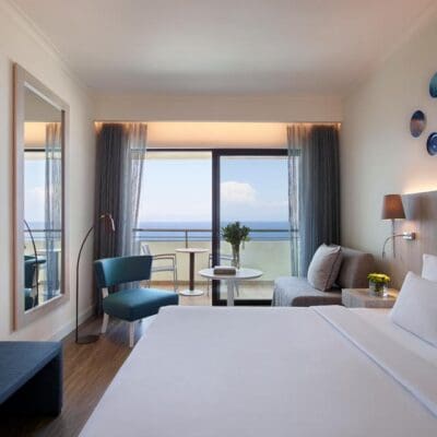 Het luxe vijfsterrenhotel Amus Hotel & Spa staat bekend om haar goede service en kwaliteit. Het gastvrije hotel is tegen de heuvel van Ixia gebouwd en biedt een prachtig uitzicht op zee en een kamer met zeezicht is dan ook zeker aan te raden. De rustige ligging en de luxe faciliteiten zorgen voor een ontspannen verblijf en het personeel doet er alles aan om je het zo comfortabel mogelijk te maken. Het hotel ligt direct aan het strand, te bereiken via een voetgangerstunnel, en hier staan de bedjes en parasols al voor je klaar. Blijf je liever bij het zwembad, er zijn er maar liefst twee in totaal. In de wellness kun je terecht voor een heerlijke behandeling en je kunt een balletje slaan op het tennisveld. In dit leuke hotel hoef je jezelf geen minuut te vervelen. Fijne vakantie!