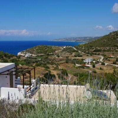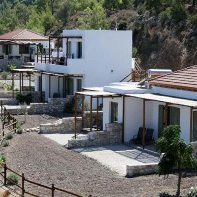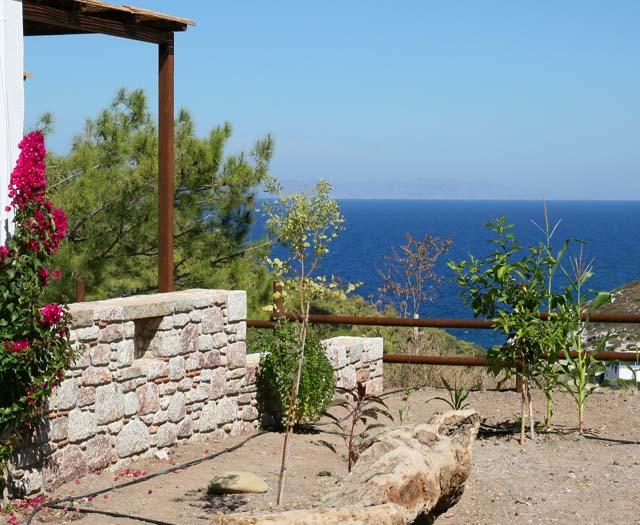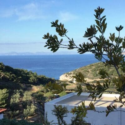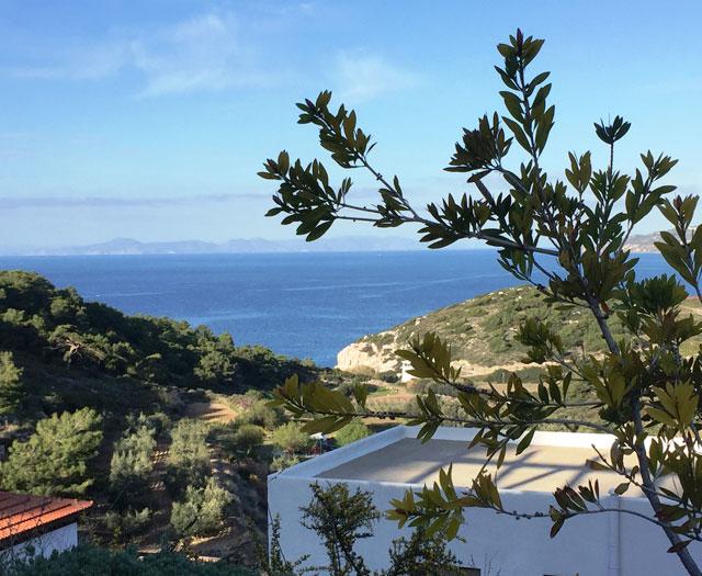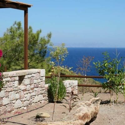 “En deze petra”, de Belgische eigenaresse Ulrike strijkt over een grote, oude steen die in de muur is gemetseld van het receptiegebouw, “is heel erg oud. Ioannis heeft hem gevonden bij het graafwerk, net voordat we begonnen met de bouw. Waarschijnlijk komt hij nog uit de tijd van de Doriërs, bijzonder hè?” Ik knik en ga met mijn rug tegen een olijfboom zitten terwijl Ulrike de sleutel van mijn bungalow haalt. Auberge Kalopetri ligt hier prachtig: een weids en groot terrein, met vanuit ieder hoekje uitzicht op de zee. Hmm… nu heel eventjes mijn ogen dicht, denk ik. Het rinkelen van de geitenbelletjes, de geur van citrusvruchten en salie…