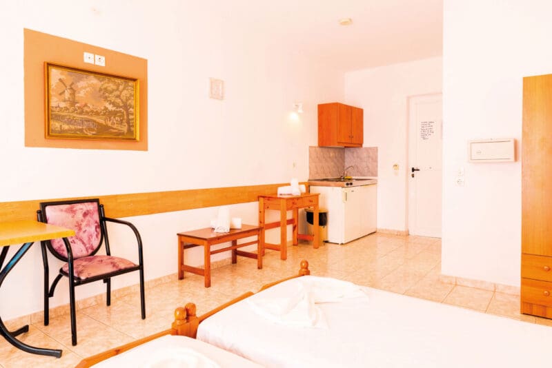Meropi Studios is een kleinschalig complex en ligt net buiten het bruisende centrum van Faliraki en op loopafstand van het strand. Je kunt hier heerlijk ontspannen bij het zwembad, van de zon genieten op het zonneterras en een drankje of een snack bestellen bij de pool bar. Meropi Studios is ideaal voor diegenen die een rustige locatie willen en toch vlak bij het gezellige en bruisende Faliraki.