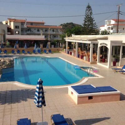 Rhodian Rose Hotel is een gezellig familiehotel aan de rand van de bruisende badplaats Faliraki op Rhodos. Hier geniet je van een ontspannen zomervakantie in een kleinschalige en gemoedelijke sfeer. Met een groot zwembad, een kinderbad en een zonnig terras is dit de perfecte plek om helemaal tot rust te komen. De kamers zijn netjes ingericht en hebben allemaal wifi en een eigen balkon met uitzicht op het zwembad, de tuin of het rustige platteland. Het strand ligt op slechts 550 meter afstand, en binnen 900 meter sta je al in het levendige centrum van Faliraki. Het vriendelijke personeel staat altijd voor je klaar om ervoor te zorgen dat je vakantie onvergetelijk wordt.