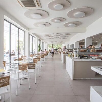 Hotel Aiora Aqua Resort in het gezellige Lardos op Rhodos biedt alles voor een onvergetelijke vakantie met moderne faciliteiten en een ideale ligging. Op slechts 300 meter van het mooie zandstrand en 500 meter van het levendige centrum, is alles binnen handbereik voor een geweldige tijd. Geniet van uitgebreide eetmogelijkheden, van een gevarieerd buffetrestaurant tot authentieke Griekse gerechten en Italiaanse specialiteiten. Overdag biedt de pool bar verfrissende drankjes voor bij het zwembad en het aquapark, waar de hele familie zich kan uitleven.