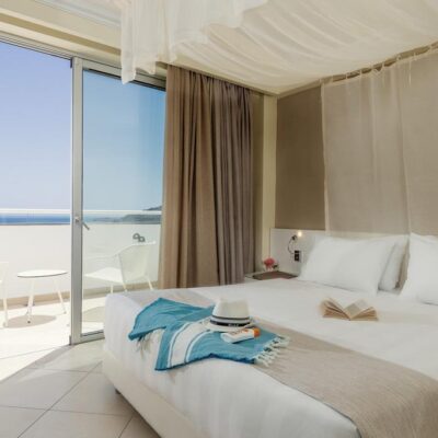 Griekse gastvrijheid ten top, Stijlvolle kamers, Hemelse bedden, Meerder zwembaden om in te plonzen, Schilderachtige omgeving, Onafhankelijk duurzaamheidslabel & inclusief transfers.