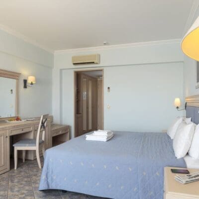 Voor een uiterst relaxte vakantie op Rhodos met vrienden of je familie ga je uiteraard naar Lindos Princess Beach Hotel! Dit hotel heeft alles wat je voor een weldverdiende vakantie nodig hebt: een privéstrand waar je lekker met je blote voeten over het heerlijke warme strand loopt, om vervolgens heel even je voeten af te koelen in de heerlijke zee. Kijk eens om, zie je die imposante bergen in de verte? Ook dat is Rhodos! Het Lindos Princess Beach Hotel heeft uiteraard zelf ook genoeg te bieden: dobber lekker rond in één van de uitnodigende zwembaden, spetter lekker rond met je kids in de kinderzwembaden, of zak lekker onderuit op één van de ligbedjes; je mag uiteraard niet vergeten om je kleurtje bij te werken. En voor de actieve vakantieganger zijn er ook sportieve ontspanningsmogelijkheden: tennis, duik het fitnesscentrum in, of probeer eens boogschieten. Aan de innerlijke mens is ook gedacht: 3 buffetrestaurants en 2 à-la-carterestaurants verzorgen je met liefde en heerlijke gerechten en bij één van de 3 bars schenken ze graag een lekker drankje voor je in. Zie jij het al voor je? Aan het eind van een heerlijke, zonnige vakantiedag met een lekkere cocktail of een heerlijk koel biertje bijkomen en plannen maken voor morgen? Ja? Wacht dan niet langer, en boek je volgende vakantie naar Rhodos!