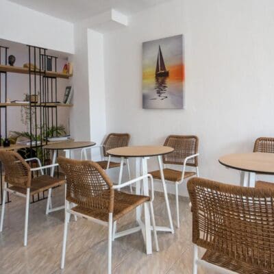 De stijl van het hotel is warm en eenvoudig, met lichte kleuren, veel hout en een kalme sfeer. De kamers zijn compact maar comfortabel, en beschikken allemaal over een balkon of terras waar je in alle rust de dag kunt beginnen met een kop koffie.