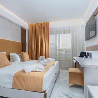 Dit moderne hotel ligt op een top locatie in Rhodos stad, op slechts 5 minuten rijden van de Haven van Rhodos en het beroemde Elli strand, perfect voor een dagje relaxen onder de Griekse zon. Geniet van een maaltijd in het à la carterestaurant of wandel naar het bruisende centrum voor een diner bij lokale hotspots. Verken het oude stadsgedeelte, dwaal door sfeervolle straatjes en ontdek de middeleeuwse vestingwerken. Kleinschalig, maar met comfortabele kamers en een geweldige ligging, midden in het levendige Rhodos.