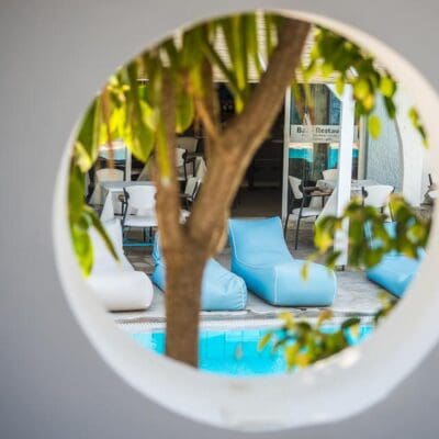 De sfeervolle studio’s zijn ingericht met lichte kleuren en sfeervolle kleuraccenten. Rondom het speels gevormde zwembad staan heerlijke ‘ligkussens’, waar je na een zomerse dag neer kunt ploffen met een drankje. Begin de dag goed en reserveer een lekker ontbijt erbij, dan start je gegarandeerd goed want het ontbijtbuffet is heerlijk. In de buurt van de studio’s zijn de leuke winkeltjes, tavernes, gezellige bars en discotheken te vinden. Met de bus, een auto of fiets is het mogelijk om nog veel meer te ontdekken en het hele eiland rond te crossen.