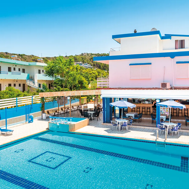 Bij Studio’s Meropi kun je genieten van een ontspannen sfeer. Het complex beschikt over een verfrissend zwembad en een kinderbadje, perfect voor het hele gezin. Ligbedden en parasols zijn beschikbaar om te ontspannen onder de zon. De pool- en snackbar zorgen voor heerlijke verfrissingen en lichte maaltijden gedurende de dag, zodat je zorgeloos kunt genieten van je vakantie. Of je nu wilt relaxen bij het zwembad of de lokale omgeving wilt verkennen, Studio’s Meropi is de ideale plek voor een fijne vakantie op Rhodos.